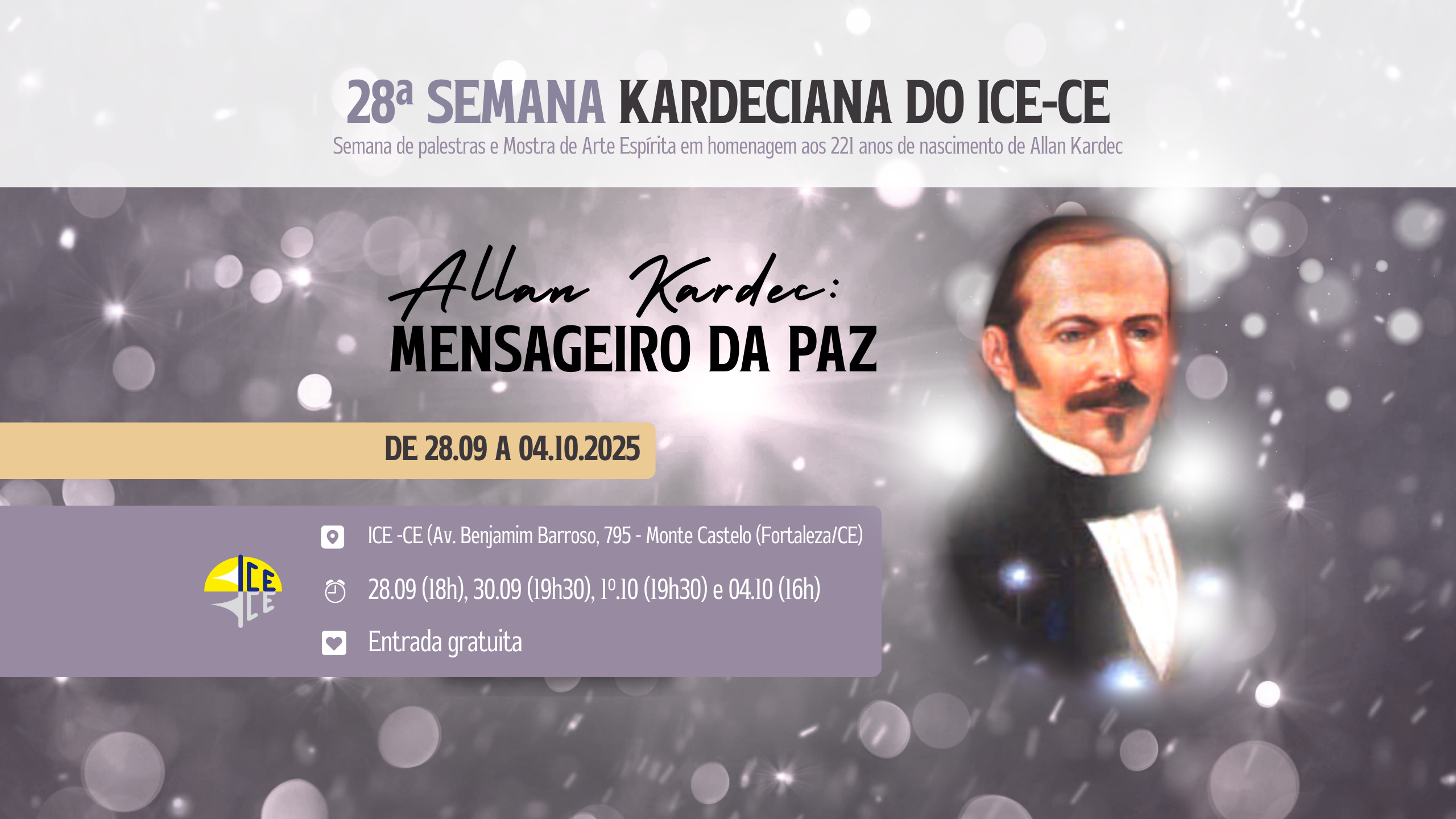 Semana de homenagem a Kardec ocorre de 28 de setembro a 4 de outubro no ICE-CE, com palestras especiais e mostra de arte espírita